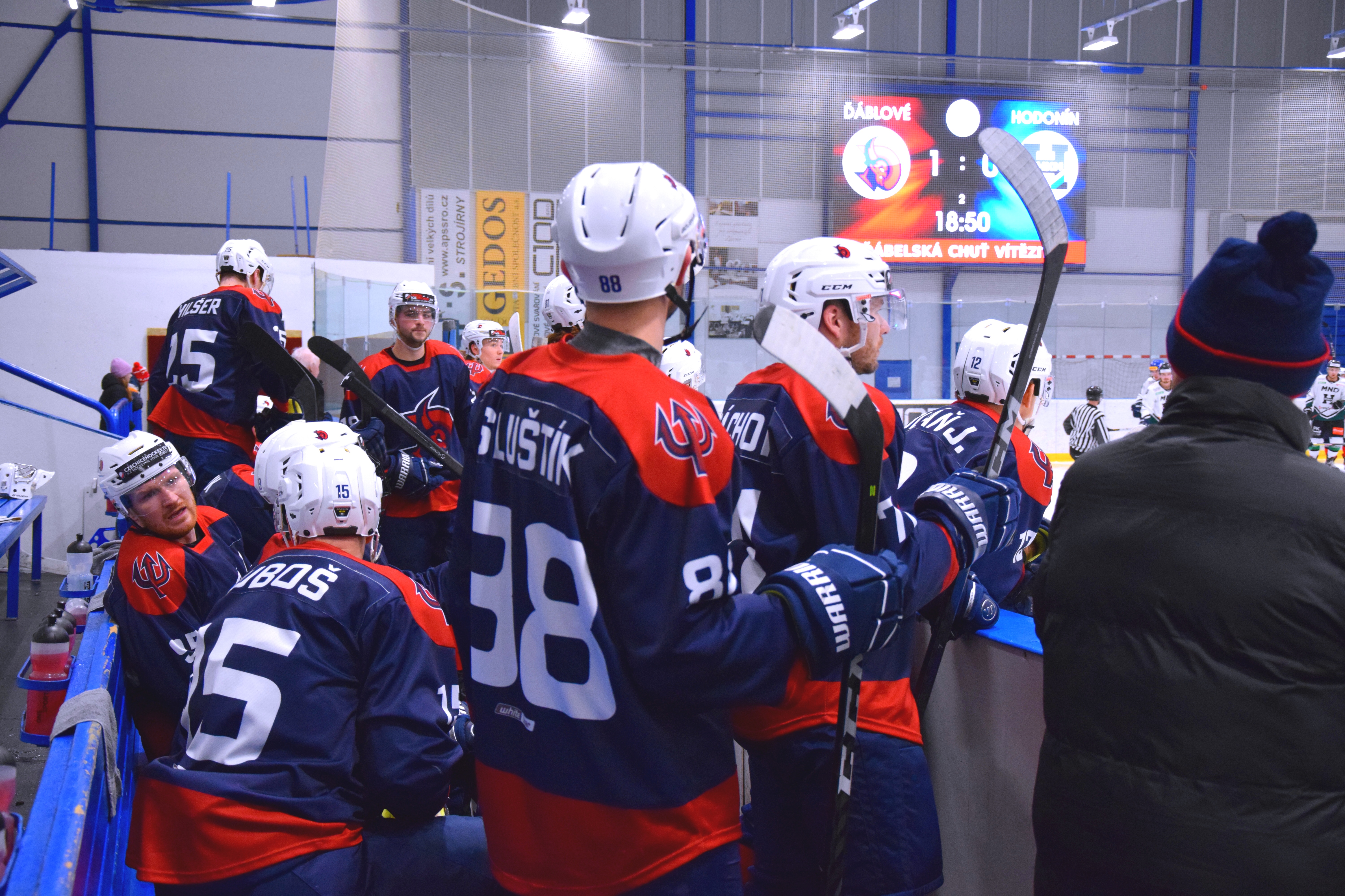 „Musím pochválit celý mančaft. Makali jsme od začátku do konce. Vedli jsme 2:0, ale ve druhé třetině jsme trochu polevili. Dostali jsme gól ve vlastní přesilovce, ale nepoložilo nás to. Zvedli jsme se, hráli jsme týmově a zápas se nám podařilo dotáhnout do vítězného konce. Musím však klukům pogratulovat a poděkovat za týmovou práci. Určitě to budeme chtít přenést do dalšího utkání. Musíme takto jít krůček po krůčku, od zápasu k zápasu,“ hodnotil sobotní zápas s Hodonínem trenér Ďáblů Petr Kuboš.
