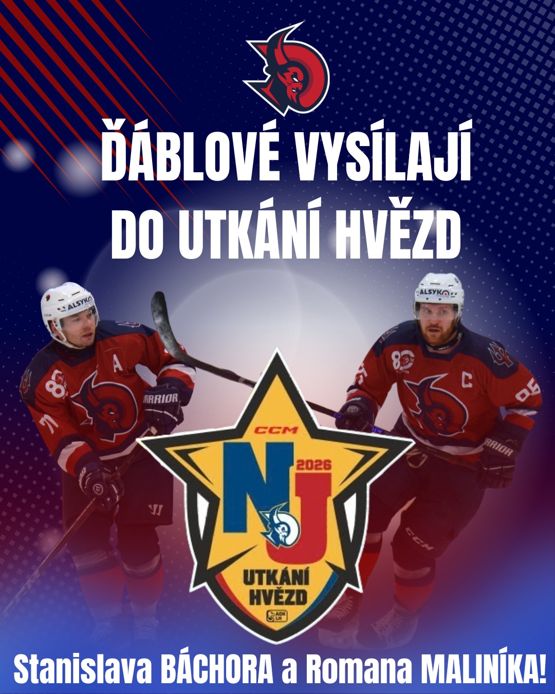 Nový Jičín bude hostit třetí ročník druholigového Utkání Hvězd. Nejlepší hráči z každého týmu spojí síly a postaví se výběru druhé skupiny. Kromě exhibičního utkání se fanoušci mohou těšit na dovednostní soutěže. Kdo si odnese cenu nejrychlejšího bruslaře, nejlepšího střelce nebo krále samostatných nájezdů? To vše již 7. února od 16:00. Z Ďáblů obléknou dres východního výběru Roman Maliník a Stanislav Báchor.